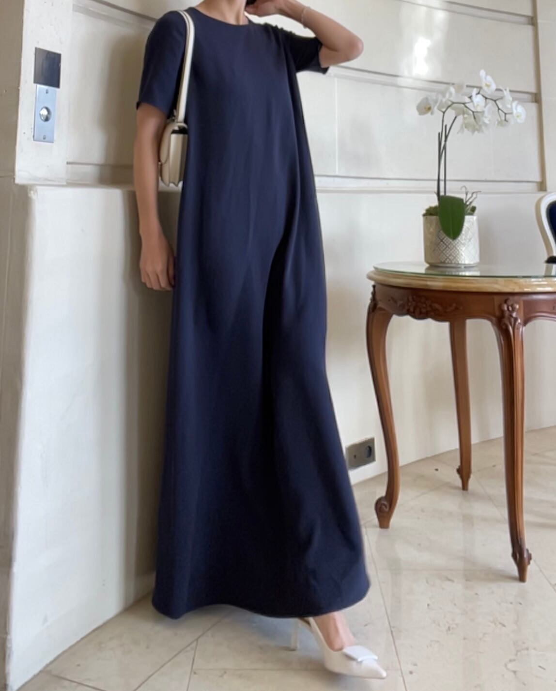 落ち感、ドレープと高級感ある生地が美しいドレスはリラックスしたオーバーサイズシルエット。